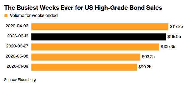 Middle East war. Rising yields and oil prices. Private credit distress. It barely seemed to matter for corporate borrowers this week as US investment-grade bond sales came close to yet another record.