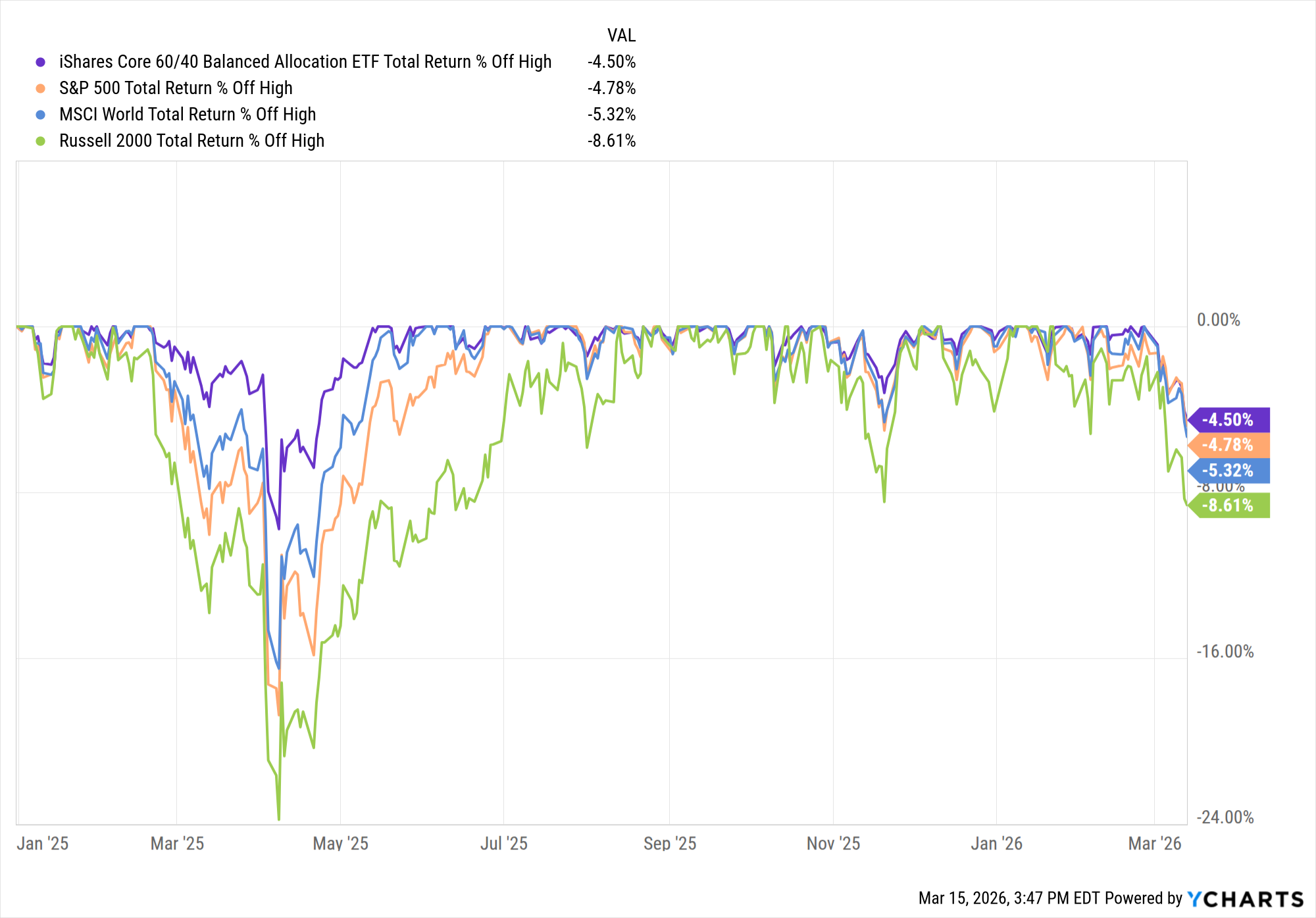 Drawdowns through Friday's close show 4-8% pullbacks among the major equity index and balanced ETFs…