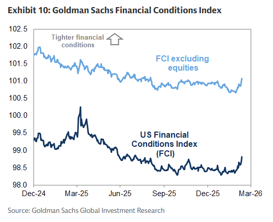 Falling stocks, rising risk-free yields and wider credit spreads have pushed financial conditions off of their lows…