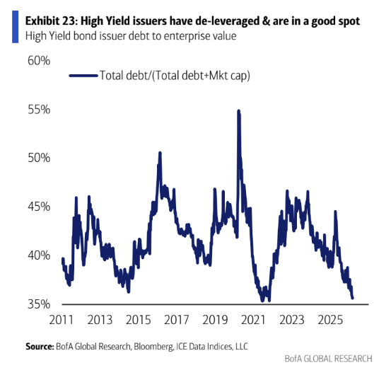 Even high yield issuers have cleaned up their balance sheets taking risk away from their borrowers…