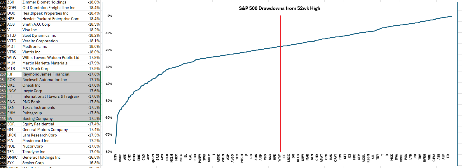 Among individual components in the S&P 500, the median stock is in a 18% drawdown…