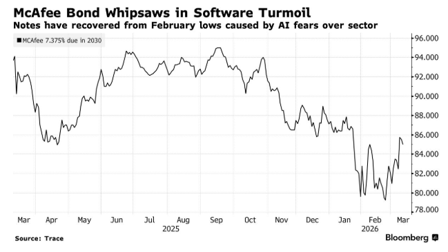 McAfee bought back about $287 million of unsecured notes at a discount, taking advantage of a software rout that hit its debt stack, according to people familiar with the situation.