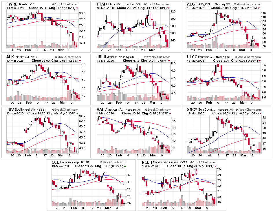 Companies exposed to jet fuel or bunker fuel are having a difficult March with their stock prices down 20-40%…