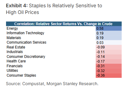 Little safety in Consumer Staple stocks which are highly sensitive to rising oil prices…