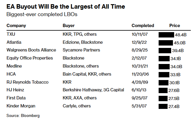 The Electronic Arts buyout will jump to the top of the list, for now…