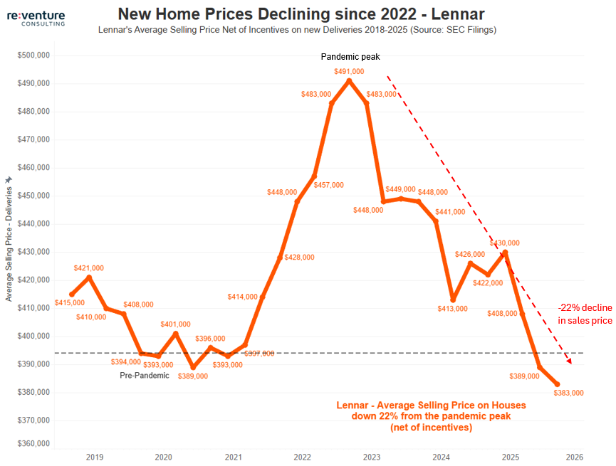 @nickgerli1: Lennar, America's 2nd largest builder, has cut their average selling price 22% from the pandemic peak. And their most recent quarter's net sales prices is now lower than pre-pandemic.