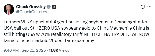 4. US soybean farmers watch. And wait. And now hope for Federal assistance (during a possible government shutdown).