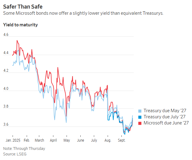 Now, Microsoft can even borrow more cheaply than the US Government can…