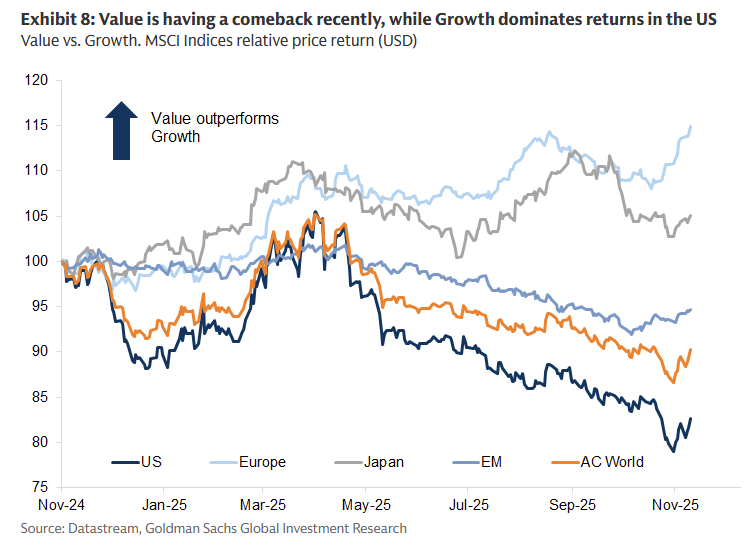 Over in Europe and Japan, value has continued to beat growth over the last 12 months.