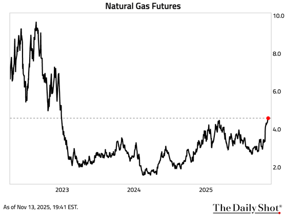 Natural gas futures are at the highest level since December 2022.