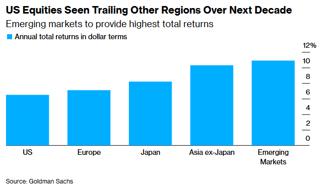 The Goldman Sachs Group Inc. strategist who correctly predicted Wall Street’s underperformance this year expects US equities to keep lagging for the next decade.
