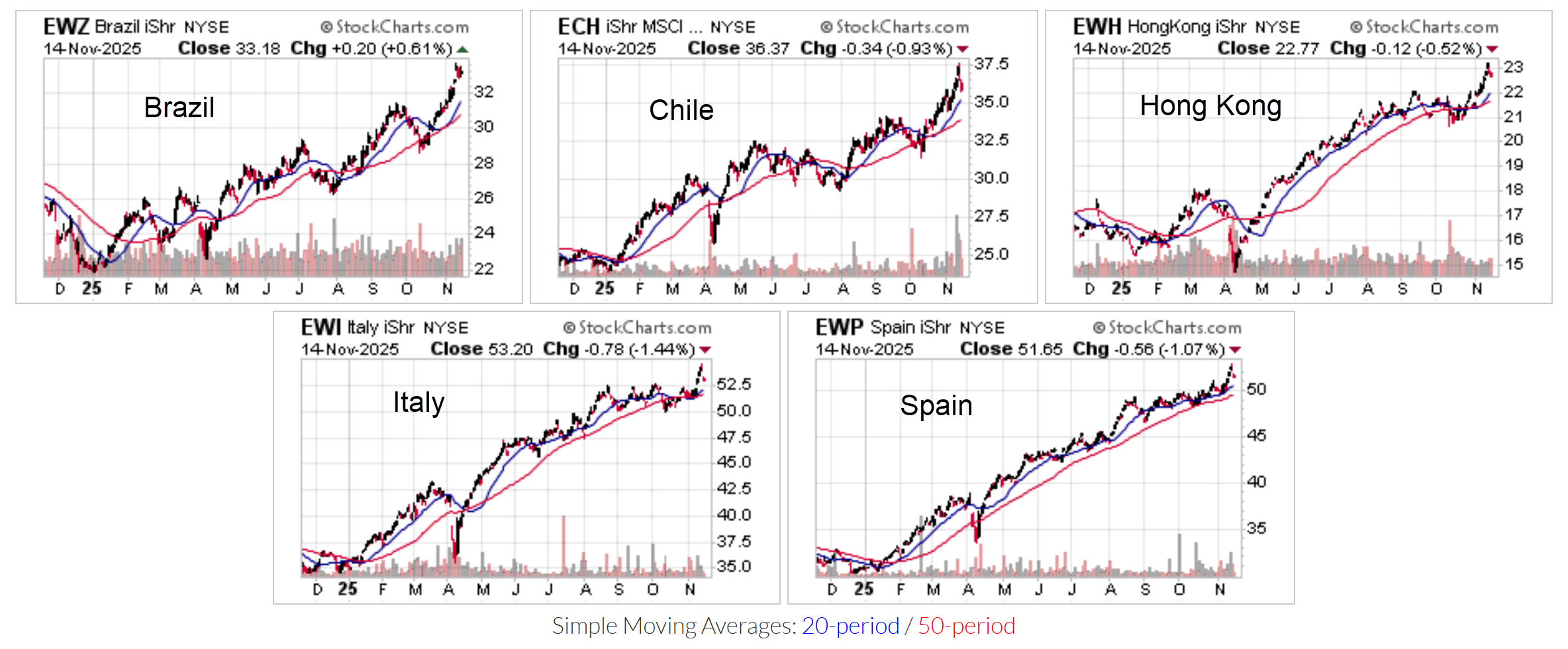 Even with the US market in pullback mode last week, here are some sizable international equity markets that just posted their fifth higher week in a row.
