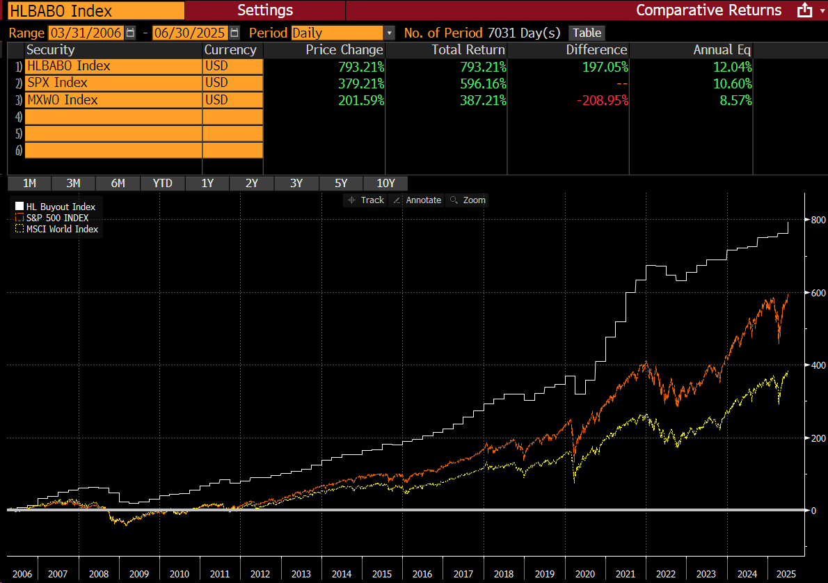 Last week we put some of our private market data onto the Bloomberg platform. Now you can more easily compare our private market indices against other asset classes or even against individual investments. An example of Private Equity Buyouts versus the major equity indexes is below. Let us know if you have any questions about the data.