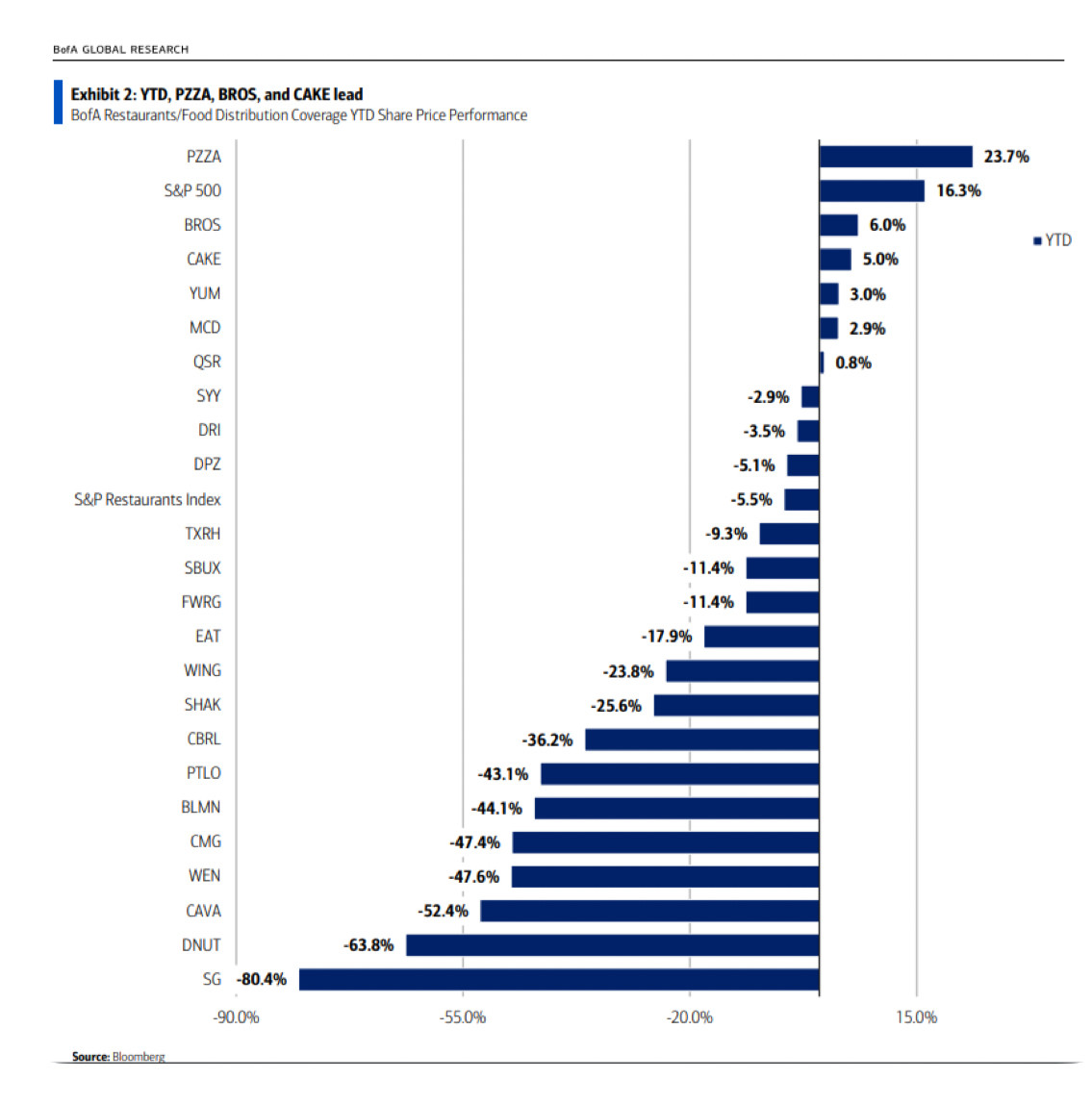 The restaurant stock performances year-to-date would suggest that it is not just a Chipotle issue…