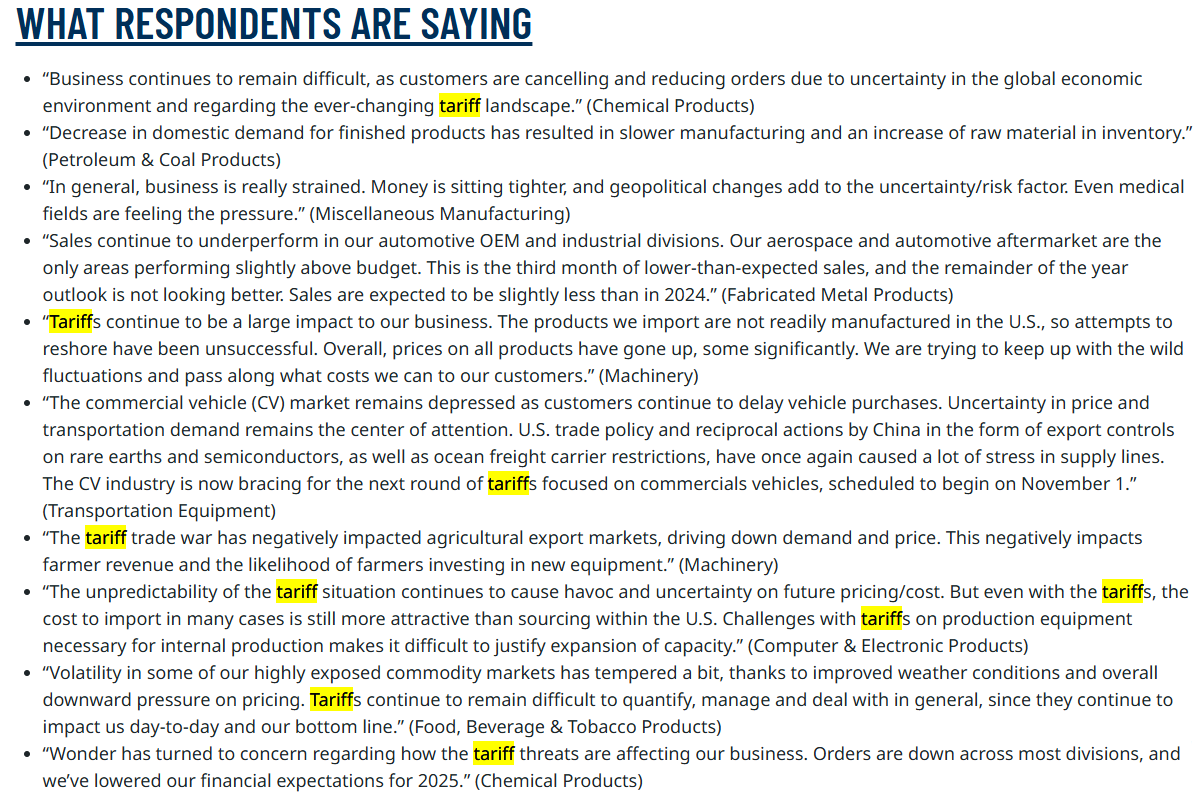 @KevRGordon: Nine mentions of tariffs in October's ISM Manufacturing PMI comments section