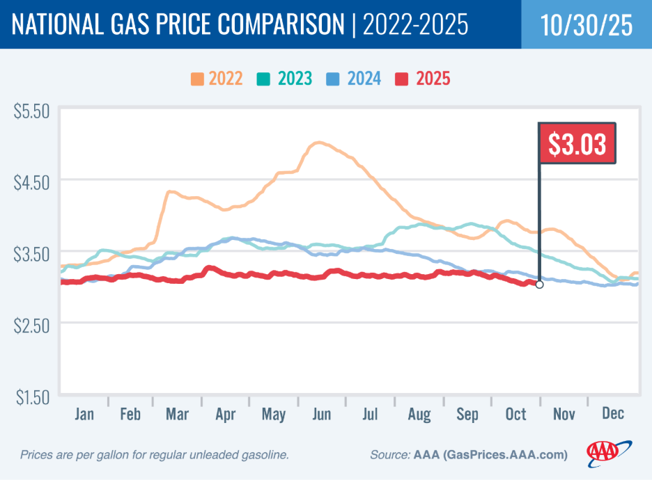 But if you do travel by road for the holidays, your gasoline will be as cheap as last year's…