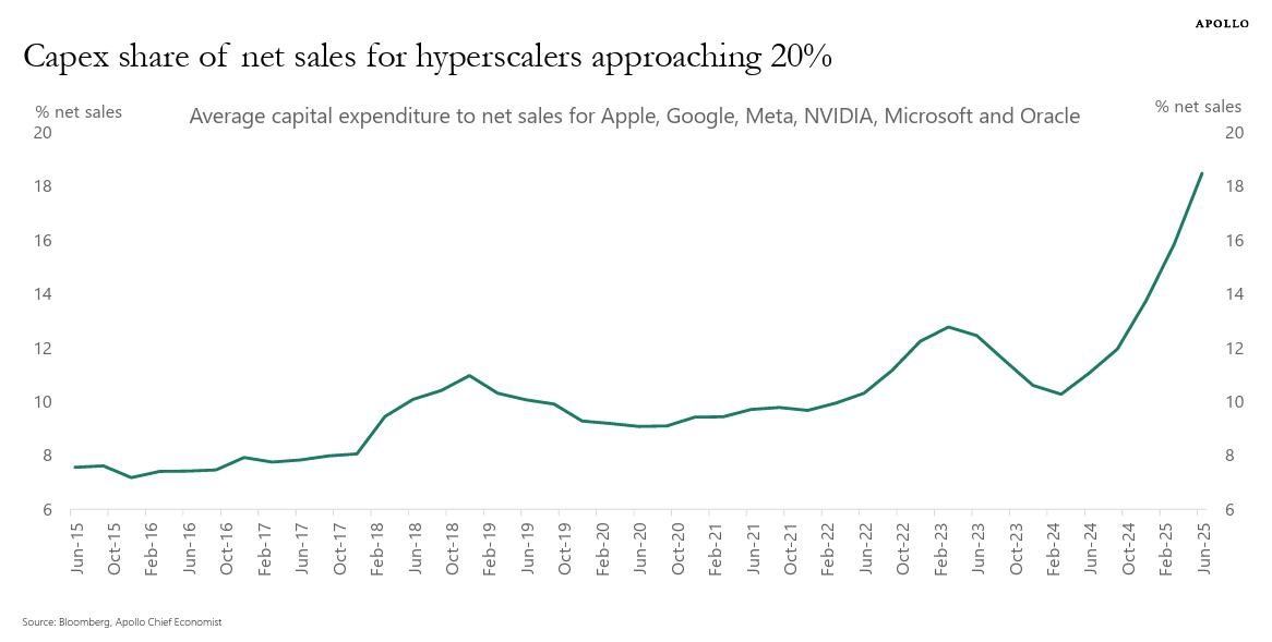 US data weakening sufficiently to allow Fed to cut credibly…July construction spending down 2.8% YoY (despite AI data center boom = 6% of total $2.1tn) and rate-sensitive recessionary right now (Chart 3), US house prices down in past 4 months, JOLTS labor market data consistent with lower Fed funds (Chart 5), AI jobs disruption starting (graduate unemployment rate up 4% to 8% past 18 months)