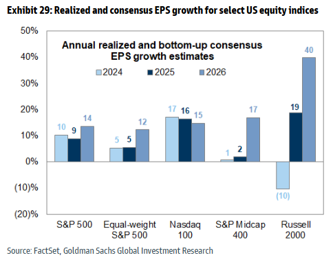 And if the US economy avoids a recession, the lower interest expense costs should add earnings leverage to small cap companies' earnings growth in 2026…