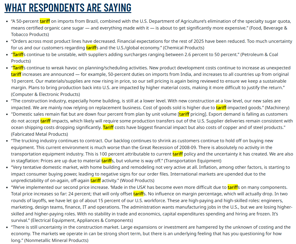 @KevRGordon: 14 mentions of tariffs in the August ISM Manufacturing comments section