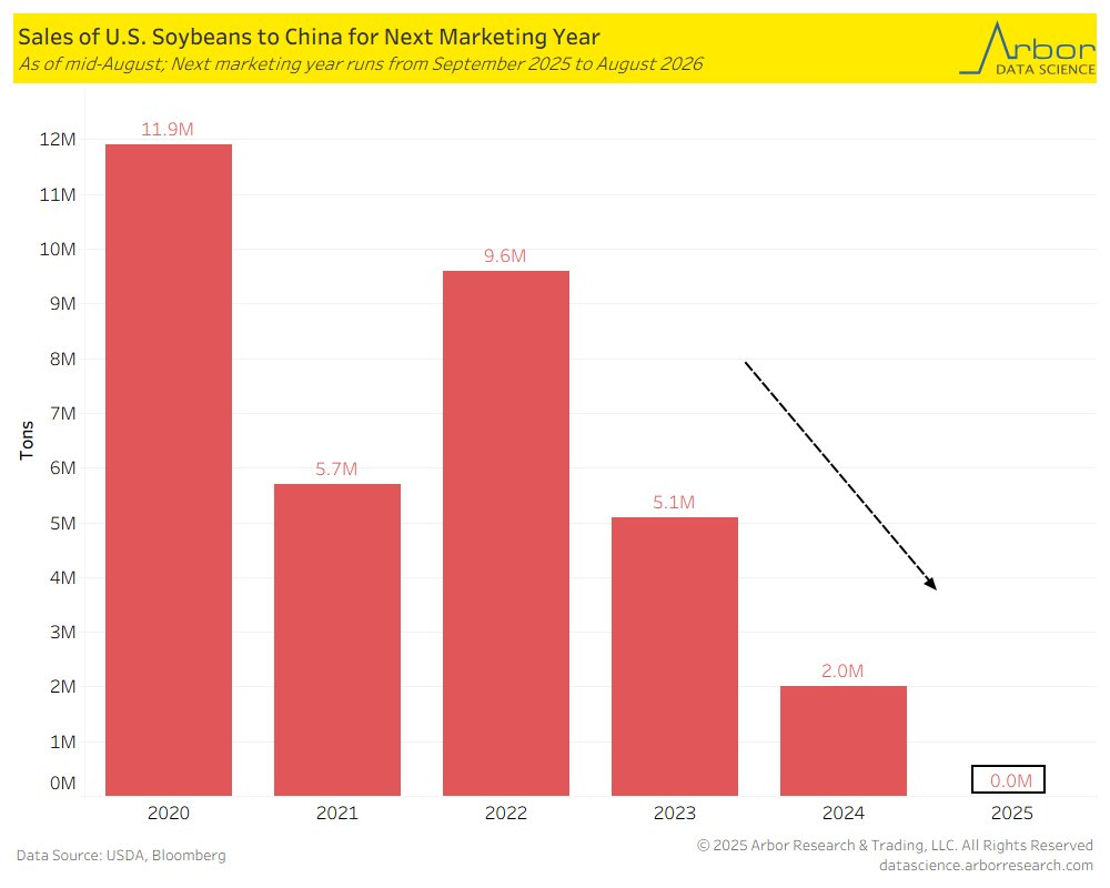 @DataArbor: A bumper crop of concern? U.S. farmers have not sold any current soybeans to China after the tariff on the U.S. crop.